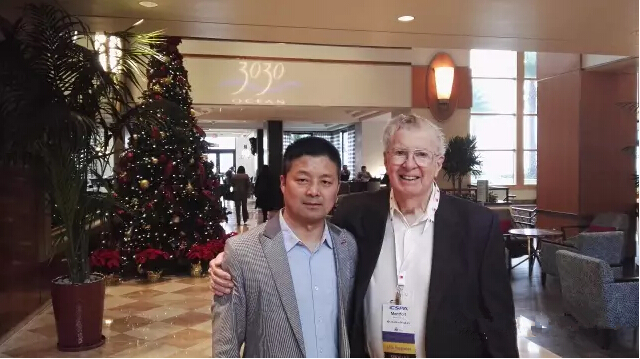 受游一中主任的特別委托,邵慶輝先生拜會了Mr Monty Johnsen和夫人,轉達了思念和衷心祝愿,贈送了代表中國傳統文化的中國汝瓷——如意,并共進午餐!Mr Monty Johnsen1925年4月出生于紐約州,二戰期間作為美國海軍少尉參加中途島戰役,并積極支持中國的抗日戰爭,曾任美國特種化學品制造者協會(CSMA)主席,是國際著名的氣霧劑權威,出版《The Aerosol Handbook:Formulation,Technology﹠Marketing》專著,并和游一中主任一起出版該書的中文版,該書對全球,包括中國的氣霧劑工業的發展起到了指引作用。Mr Monty Johnsen雖已年逾九旬,但是仍然精神矍鑠,并且連續參加了多場論壇并發表演講!